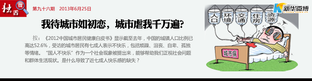 城市病了 光污染、空氣污染、噪音污染、熱島效應、食品安全、交通障礙、高空拋物、樓宇消防電梯……吸的是霧霾,吃的是不放心食品,高起的物價,昂貴的醫療,上學難,就業難,國人能健康嗎?能快樂嗎?
