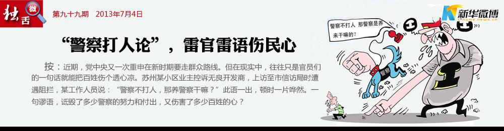 語不驚人死不休 警察是人民大眾的保護傘,警察是兒歌里的好叔叔,怎么就變成了一個野蠻群體的代名詞了?是一條魚腥了一鍋湯,還是湯本身出了問題?官員說的話,是要嚇壞百姓,還是拿警察叔叔們開玩笑?