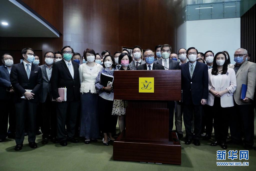 5月27日,在香港特區立法會,建制派議員集體接受記者采訪。新華社記者 王申 攝