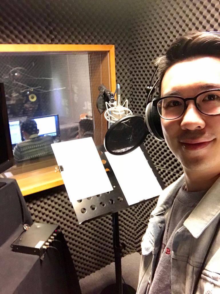 2019年,孫中文在邵氏影城為熱播劇《小娘惹》配音。(受訪者提供)