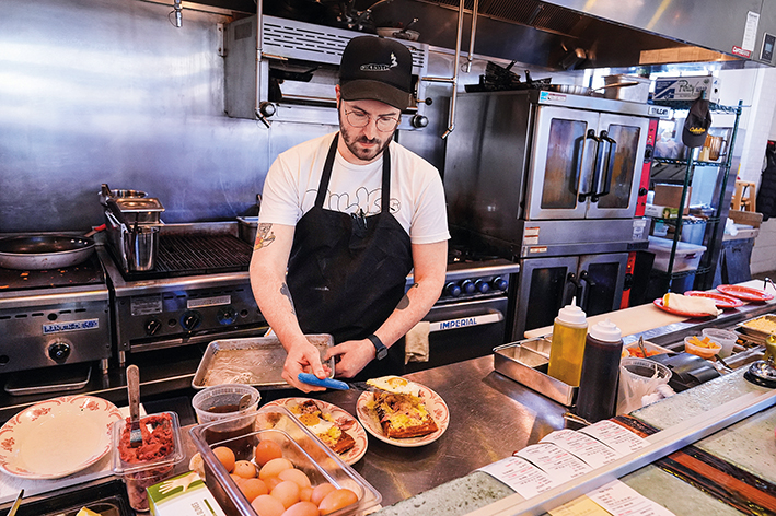 2025 年 2 月 14 日,在美国印第安纳波利斯的一家餐厅,厨师烹饪包含鸡蛋的餐食