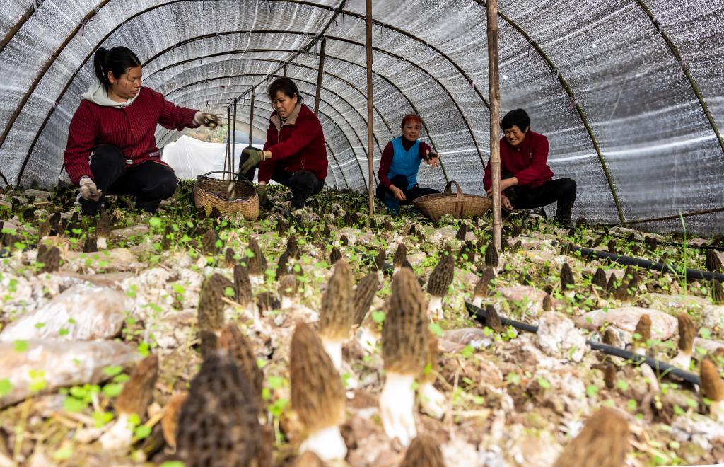 3月14日,宜昌市远安县旧县镇董家村村民在采摘羊肚菌。