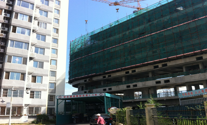 熱心的王大媽也跟記者反映:她所在的3號樓隔斷墻只有薄薄一層,毫無私密性科可言,“我們三號樓暖氣管是4分的,其他樓都是6分的這不是明擺著偷工減料么。”她還反映自家的房屋采光受到了影響“現在新建的樓距離我家不到四十米,你看中午11點都沒有陽光。我們也找過開發商幾次至今沒有給出答復。”