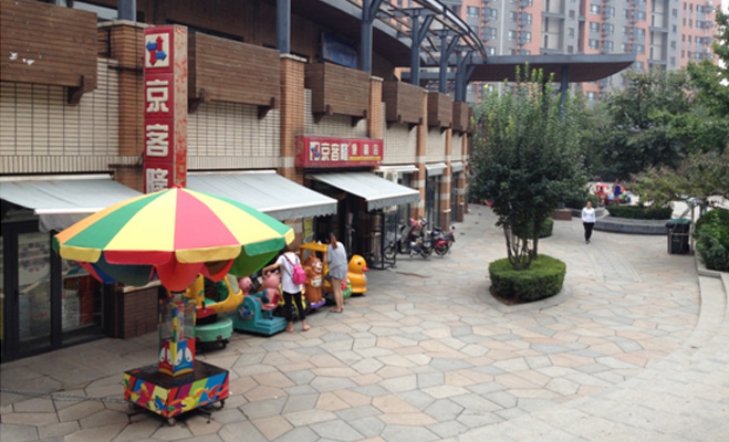 在小廣場的另一側,便民健身器材設備完好,記者探訪時大約為上午十點,不少業(yè)主帶著孩子外出活動,不遠處就是金隅七零九零幼兒園。不少業(yè)主表示,在這里住上幼兒園還是很方便的。