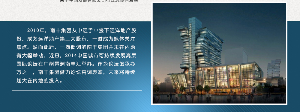 已在內地三亞、北京、大連等地有多個項目的南豐中國是南豐集團最接內地“地氣”的公司,也更為熟悉內地市場與政策。何海基認為當下中國城市可持續發展的趨勢使企業必須在做項目之前就考慮到幾年后買房及用辦公樓的人們對低碳、智慧等需求。【詳情】
