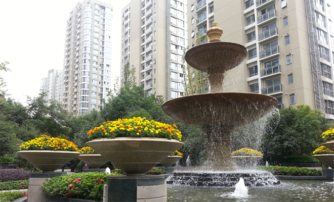 據悉,雨潤星雨華府218米的小區規劃被稱為“華東第一宮廷景觀中軸”,其擁有4米及7米大瀑布群,全冠移植108齡桂花王、200年銀杏樹、63種植物,還有30多種花卉與四季常綠的高爾夫果嶺草坪,并配備了原裝進口冷霧系統等。
