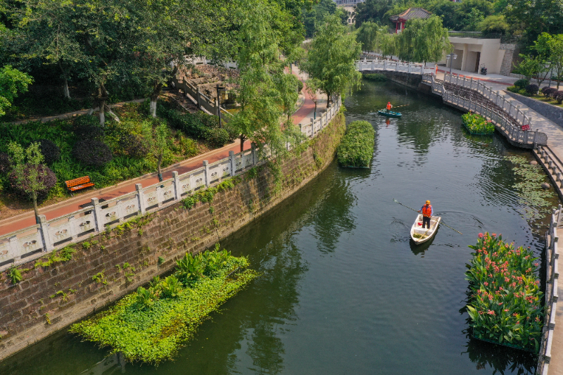 图为工作人员在重庆永川临江河红旗河段清漂(资料照片)。新华社记者 王全超 摄