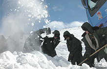 ??? 全年無霜期不到60天,水的沸點不足70℃,夏季最高溫度不超過10℃,海拔5100米……在紅其拉甫邊檢站前哨班,官兵凹陷的指甲、烏青的嘴唇、以及被強烈紫外線而灼傷的臉龐無不告訴我們,這兒寒冷、缺氧,生存環境極度劣惡……【詳細】