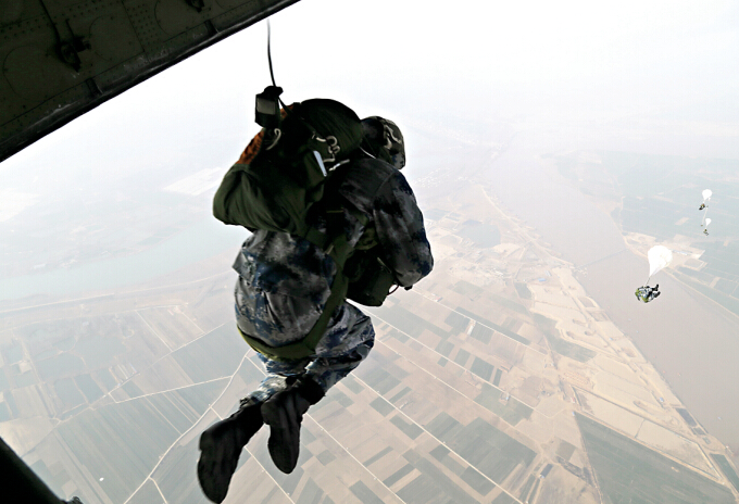 ????More than 10 parachutes carrying heavy equipment, such as vehicles, ammunition and other supplies, touched the ground. Troops immediately secured the vehicles and supplies in order to defend a vantage point and suppressed the enemy with firepower. When all the paratroopers and weapons were on the ground, the commander ordered them to quickly finish defense work and penetrate the enemy’s location.