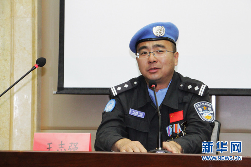 第二支赴利比里亞維和警察防暴隊副隊長王志強向學員們講述維和中的見聞感受