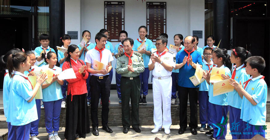 ??? 新華網長沙5月31日電(譚衛兵)全國學雷鋒先進個人、金質學雷鋒榮譽章獲得者龍凡,雷鋒輔導過的學生王文閣,海軍某部政委、“三沙雷鋒班”創建人郭建齊,全國學雷鋒活動基地、博力康博爾生物藥業集團副總經理焉平31日走進湖南長沙高新區雷鋒小學,與少先隊員們一起參加了“學雷鋒 做美德少年”慶祝六一國際兒童節大隊主題活動。