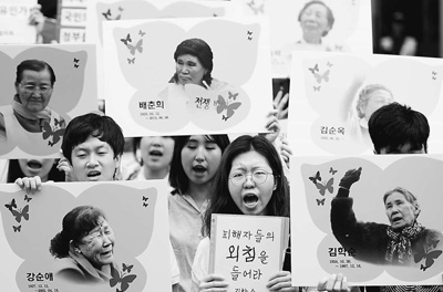 ????韓國一些民間團(tuán)體15日舉行光復(fù)節(jié)71周年紀(jì)念活動(dòng),要求日本對歷史負(fù)責(zé)。日本駐韓國大使館前,100余名學(xué)生舉行記者會(huì),譴責(zé)去年12月28日簽署的韓日“慰安婦”問題相關(guān)協(xié)議。在相同地點(diǎn)舉行的還有譴責(zé)日本戰(zhàn)犯企業(yè)集會(huì),“日本統(tǒng)治下遺屬會(huì)”成員們喊著口號(hào),強(qiáng)烈要求日本政府和戰(zhàn)犯企業(yè)進(jìn)行道歉和賠償。在首爾光華門廣場,西大門刑務(wù)所歷史館,清溪川等地,韓國民眾向日本、向戰(zhàn)爭歷史表達(dá)“訴求”,要求日本立即謝罪。