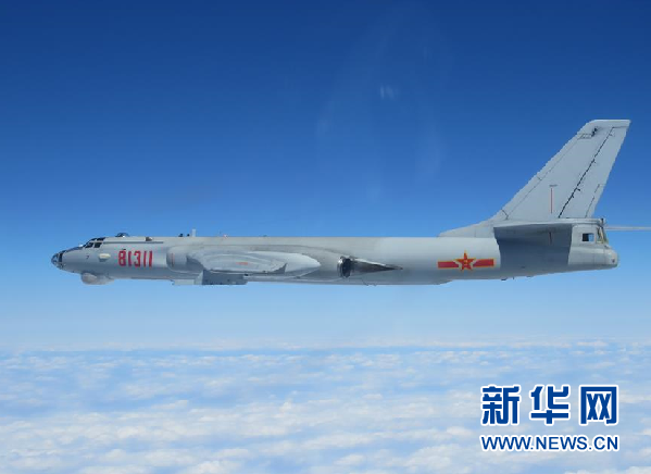 3月2日,在西太平洋某海域,一架中國海軍航空兵轟炸機參加艦機實兵對抗演練。當日,中國海軍航空兵轟炸機、殲擊機、警戒機等多型多架飛機,經宮古海峽赴西太平洋某海域,與航經這一海域的海軍遠海訓練艦艇編隊進行了實兵對抗演練。新華社發(陳小勇攝)