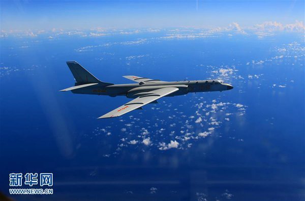 空軍轟-6K飛機參加遠海訓練(資料照片)。新華社發(馮翔 攝)