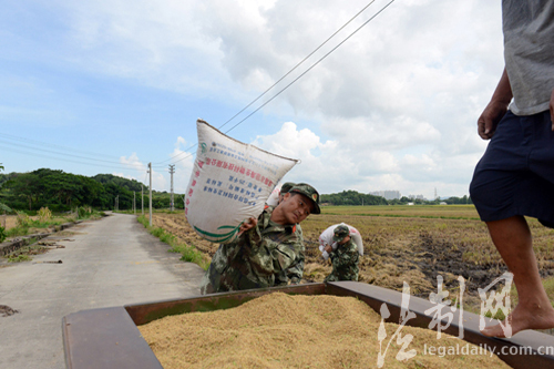 ????據悉,眼下正是稻谷收割農忙季節,廣東中山邊防支隊沙頭涌邊防派出所官兵每年定期來到田間地頭,解決駐地農戶勞動力不足的問題,并與他們一起分享豐收的快樂。(肖亭)
