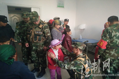 圖為邊防官兵在詢問群眾受傷情況