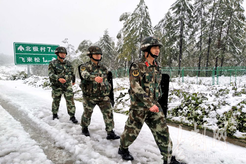 ????8月28日,位于祖國最北端的黑龍江省漠河縣北極村,迎來今年入秋的第一場雪,飛舞的雪花給神州北極披上了一層神秘的外紗,風景美不勝收。駐守在祖國最北端的黑龍江省邊防總隊大興安嶺地區邊防支隊北極邊防派出所組織官兵在轄區重點路段冒雪巡邏,守護游客安全“找北”。(褚福超)