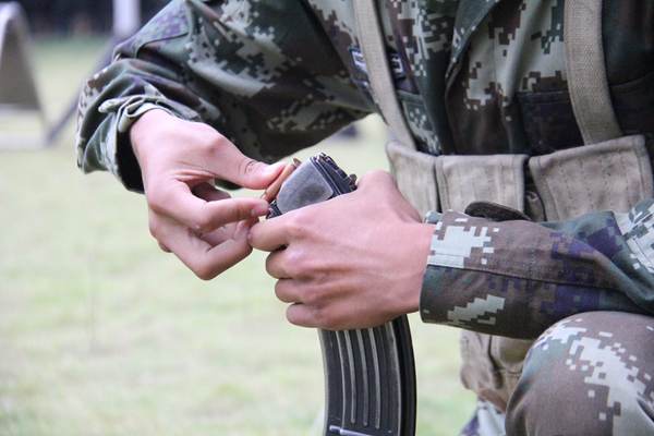 ????射擊場上,隨著指揮員一聲令下,新兵分批次領(lǐng)取實(shí)彈奔向射擊地線、臥姿裝彈、據(jù)槍瞄準(zhǔn),動作干脆利落。 “一號靶42環(huán),二號靶48環(huán)、三號靶……”報靶員通過對講機(jī)向記錄員如實(shí)報告。經(jīng)最后成績統(tǒng)計(jì),這個新訓(xùn)團(tuán)廣西籍新兵唐美飛在考核中取得了步槍精度射擊5發(fā)子彈49環(huán)的最好成績,他興奮說道:“我打了49環(huán),主要是我們班長教的好,我會加倍努力,不辜負(fù)班長對我們的嚴(yán)格要求。”(陳敬龍)