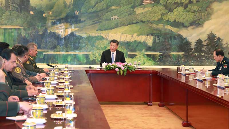 ????新華社北京4月23日電(記者梅世雄)國家主席習(xí)近平23日在人民大會堂集體會見上海合作組織成員國國防部長。俄羅斯國防部長紹伊古、哈薩克斯坦國防部長扎蘇扎科夫、吉爾吉斯共和國武裝力量總參謀長杜伊申比耶夫、巴基斯坦國防部長達(dá)斯特吉爾·汗、塔吉克斯坦國防部長米爾佐、烏茲別克斯坦國防部長阿濟佐夫,上海合作組織副秘書長索韋托維奇,上海合作組織地區(qū)反恐怖機構(gòu)執(zhí)行委員會副主任吉約索夫、印度駐華大使班浩然以及作為特邀嘉賓列席此次會議的白俄羅斯國防部長拉夫科夫參加會見。