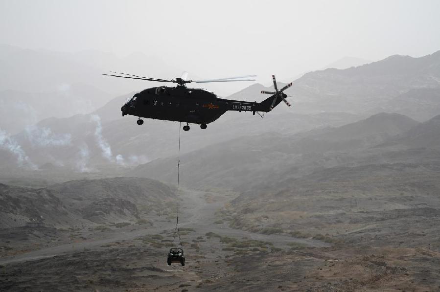 ????23日,陸軍新質(zhì)作戰(zhàn)力量演練在陸軍多個(gè)演兵場連續(xù)“打響”,8支新質(zhì)作戰(zhàn)力量輪番上陣。圖為運(yùn)輸直升機(jī)吊運(yùn)全地形車。新華社記者王東明 攝