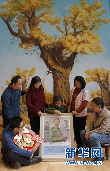 過(guò)節(jié),是親人的團(tuán)聚。今天兒子、兒媳,女兒、女婿和孫輩都來(lái)了。這次記者從北京專門給他們帶來(lái)了一個(gè)特殊的禮物——中央軍委政治工作部統(tǒng)一制作的林俊德英模掛像。