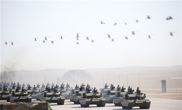 ????2017年7月30日,慶祝中國人民解放軍建軍90周年閱兵在位于內蒙古的朱日和訓練基地舉行。新華社記者 查春明 攝
