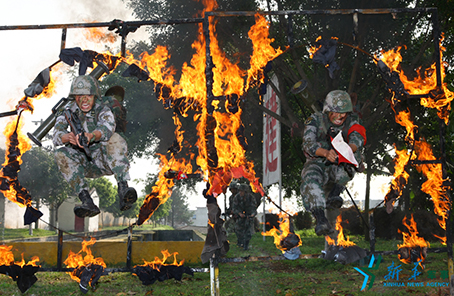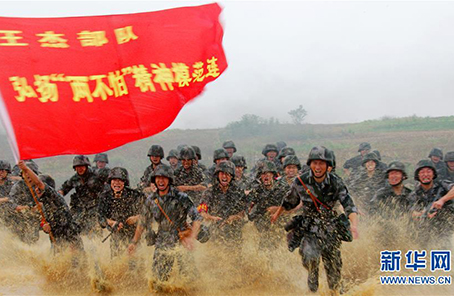 ????在一次對抗演習中,“王杰班”所在連隊官兵發起沖鋒(2015年6月25攝)。新華社發(趙聰 攝)