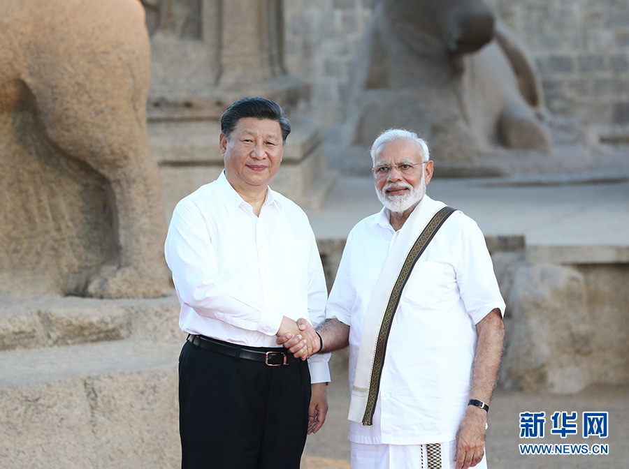 10月11日,國家主席習近平在金奈會見印度總理莫迪。 新華社記者 鞠鵬 攝