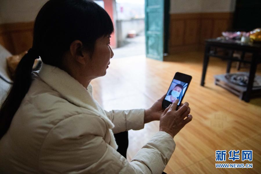 1月29日,在湖南省瀘溪縣浦市鎮麻溪口村,武中翠翻看兒子的照片。