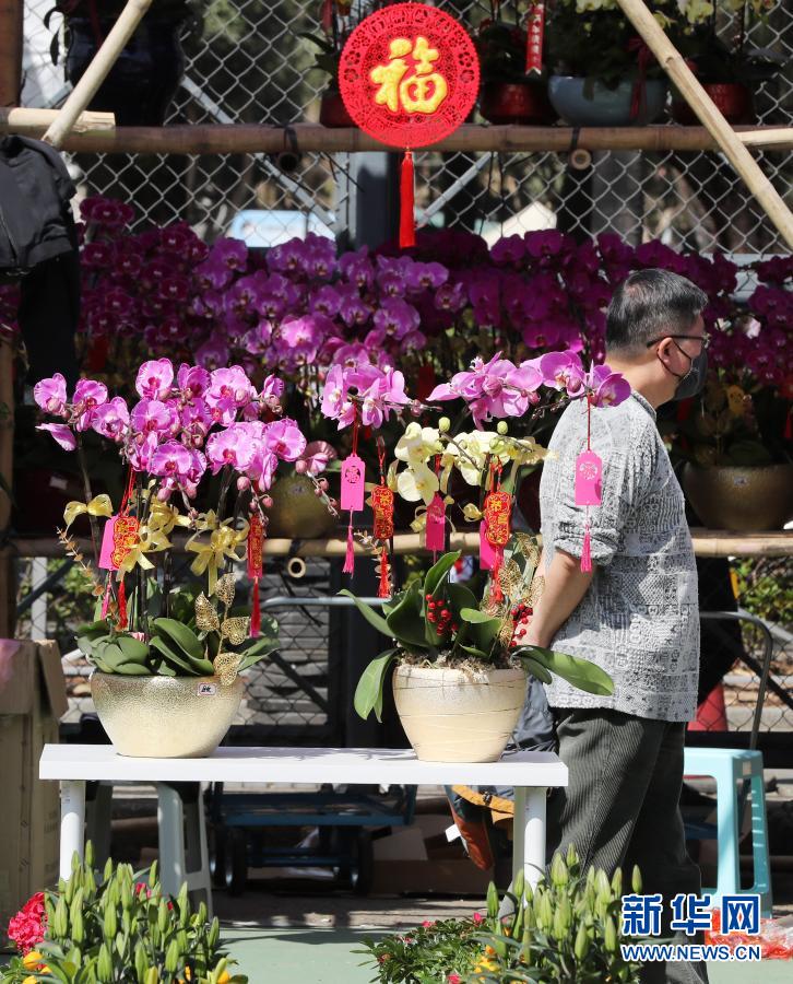 2月6日,市民在香港維多利亞公園的年花銷售點選購鮮花。新華社記者 李鋼 攝