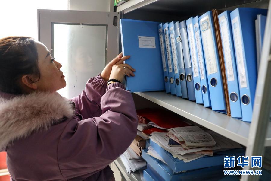 2月13日,吳窮在坪子社區綜合服務中心的辦公室整理材料。新華社記者 歐東衢攝