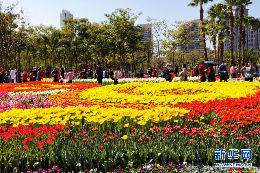 2月14日,游客在福建省廈門市園博苑賞花。新華社發(周道先 攝)
