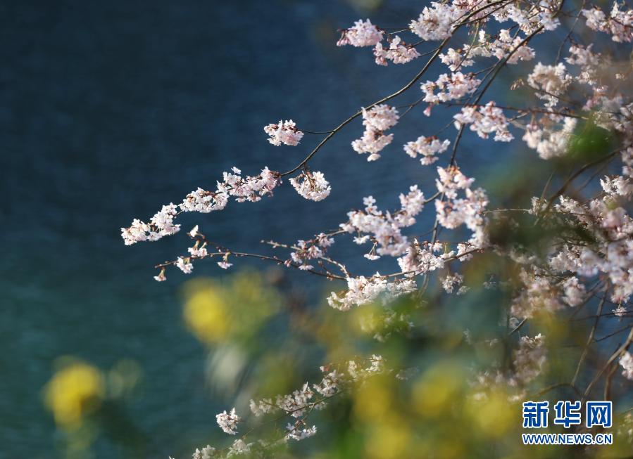 湖南張家界武陵源景區十里畫廊的櫻花競相綻放(2月14日攝)。新華社發(吳勇兵 攝)