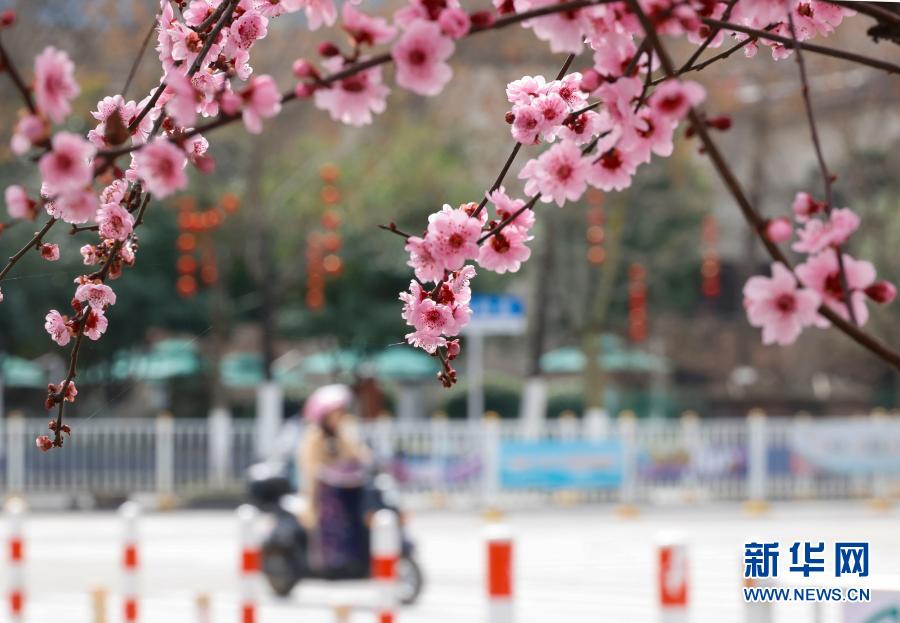 浙江景寧畬族自治縣街頭梅花盛開(2月14日攝)。新華社發(李肅人 攝)