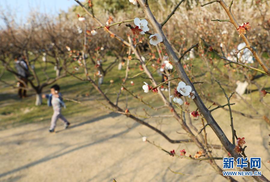 2月21日,游人在上海閔行體育公園賞花。