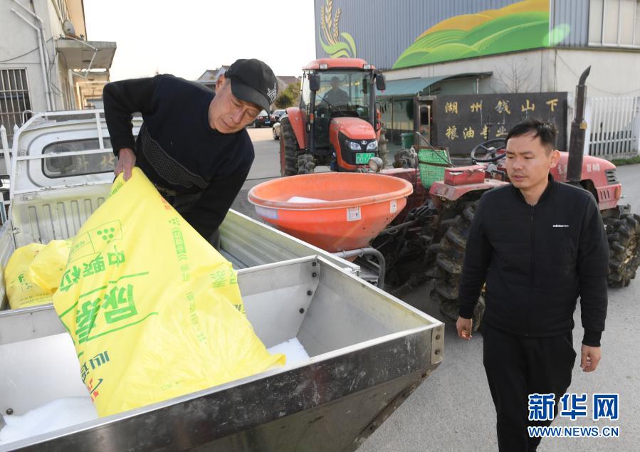 2月23日,湖州錢山下糧油專業(yè)合作社工作人員在農(nóng)機(jī)內(nèi)裝載化肥準(zhǔn)備施肥。立春過后氣溫回升,浙江省湖州市吳興區(qū)道場鄉(xiāng)全力開展春耕工作。今年該鄉(xiāng)計(jì)劃播種農(nóng)作物總面積1.2萬畝,其中水稻5000畝、小麥2000畝。新華社記者 翁忻旸 攝