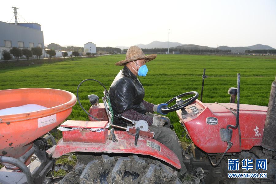 2月23日,湖州錢山下糧油專業合作社工作人員駕駛農機前往田間給小麥施肥。立春過后氣溫回升,浙江省湖州市吳興區道場鄉全力開展春耕工作。今年該鄉計劃播種農作物總面積1.2萬畝,其中水稻5000畝、小麥2000畝。新華社記者 翁忻旸 攝