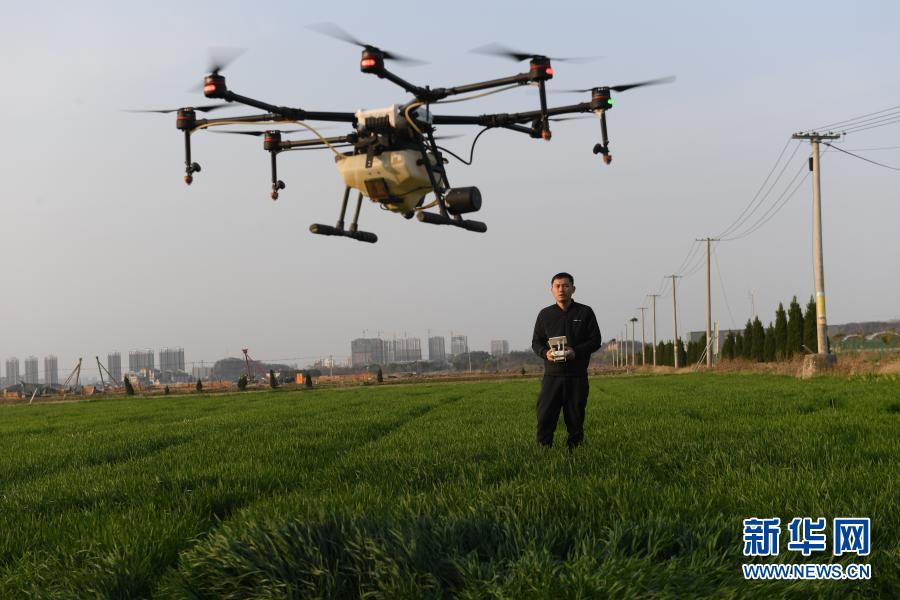 2月23日,湖州錢山下糧油專業(yè)合作社工作人員操縱無人機(jī)給小麥噴施農(nóng)藥。立春過后氣溫回升,浙江省湖州市吳興區(qū)道場(chǎng)鄉(xiāng)全力開展春耕工作。今年該鄉(xiāng)計(jì)劃播種農(nóng)作物總面積1.2萬畝,其中水稻5000畝、小麥2000畝。新華社記者 翁忻旸 攝