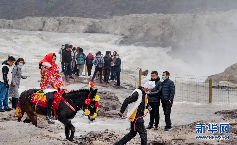 2月24日,游人在陜西壺口瀑布景區游覽。