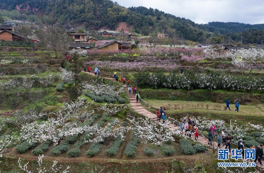 初春時節,四川省丹棱縣順龍鄉幸福古村春意盎然,百花齊放,吸引各地游客前來踏青休閑。