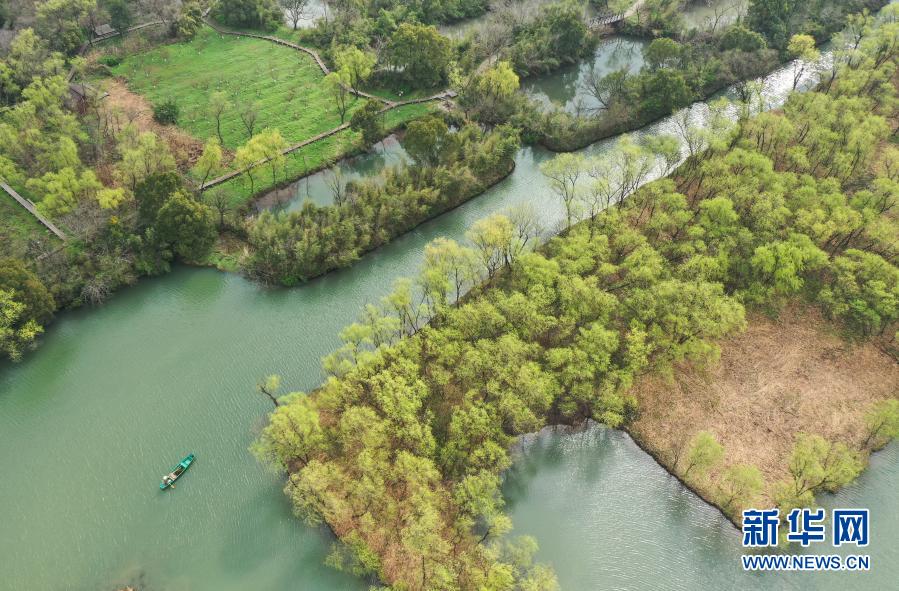 早春時節,浙江杭州西溪濕地新綠初綻,春光明媚。