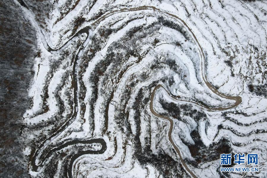 連日來,河北省沙河市西部山區(qū)出現(xiàn)降雪天氣,白雪覆蓋的梯田宛如一幅水墨畫。