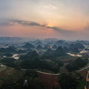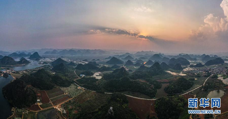 進(jìn)入3月,地處云南省文山壯族苗族自治州丘北縣的普者黑國家濕地公園內(nèi)層巒疊嶂,在光影交匯中盡顯秀美景色。