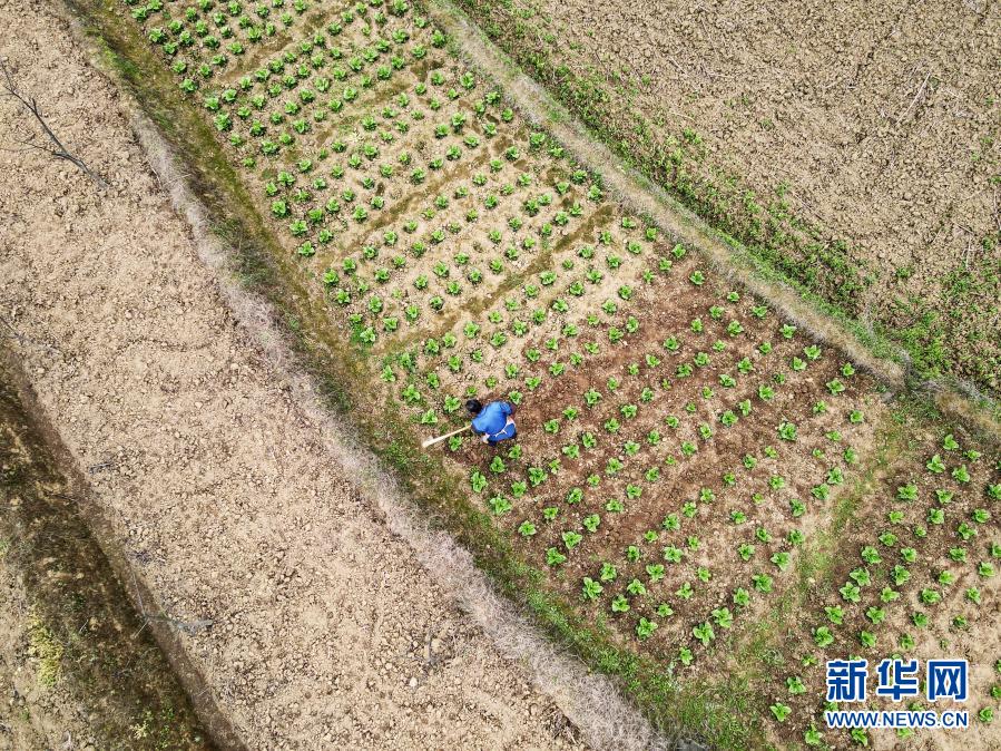3月13日,遵義市匯川區團澤鎮農民在田間勞作(無人機照片)。新華社發(羅星漢 攝)