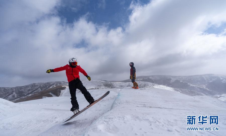 3月20日,冬殘奧會國家集訓隊單板滑雪運動員許祥(左)在冬殘奧會訓練基地訓練。新華社記者 才揚 攝