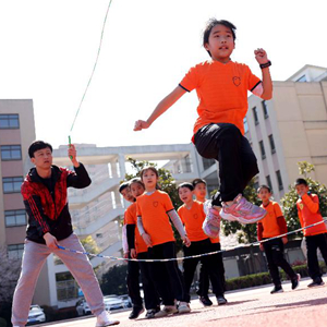 自2016年開始,安徽省合肥市瑤海區(qū)大通路小學(xué)新海校區(qū)將“花樣跳繩”運(yùn)動融入學(xué)校素質(zhì)教育實(shí)踐中,聘任專業(yè)老師,開設(shè)花樣跳繩課、組建花樣跳繩隊(duì),并分年級編寫特色校本教材,開展全校范圍內(nèi)的花樣跳繩活動。通過該項(xiàng)運(yùn)動,為孩子們提供鍛煉展示的平臺,豐富學(xué)生體育活動內(nèi)容,增強(qiáng)學(xué)生體能體質(zhì)。