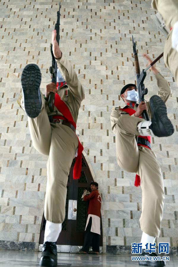3月23日,巴基斯坦軍人在位于卡拉奇的國(guó)父真納墓參加“巴基斯坦日”紀(jì)念活動(dòng)。