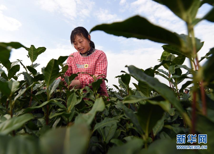 3月24日,茶農(nóng)在黃山毛峰唐模標(biāo)準(zhǔn)化生態(tài)茶園里采茶。