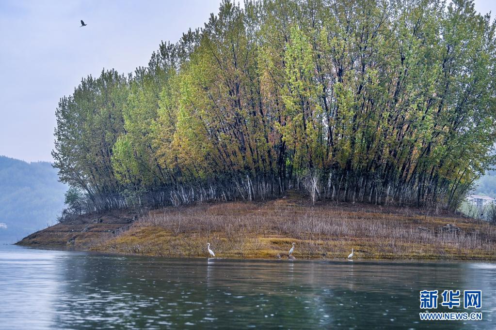 這是流水鎮的漢江江面上的一處島嶼(3月26日攝)。