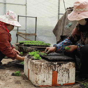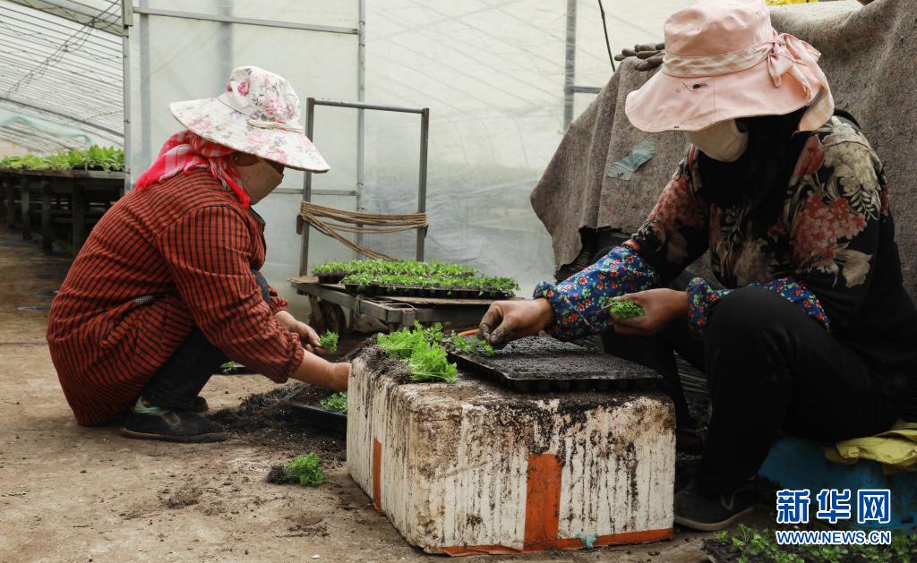 3月25日,位于青海省海西蒙古族藏族自治州都蘭縣香日德鎮下柴源村的都蘭柴源蔬菜種植專業合作社工作人員在嫁接芹菜苗。新華社記者 王艷 攝